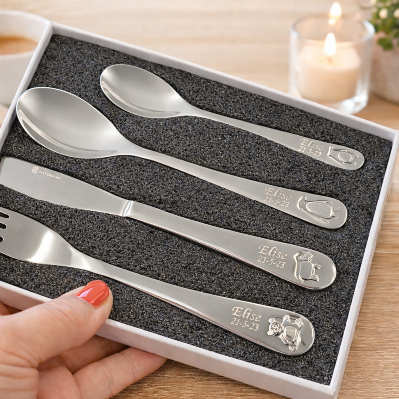 Extra bijzonder: Laat een naam en/of datum of tekst graveren op 1 of meerdere onderdelen van het besteksetje! Zo maak je dit duurzame cadeau nog persoonlijker!